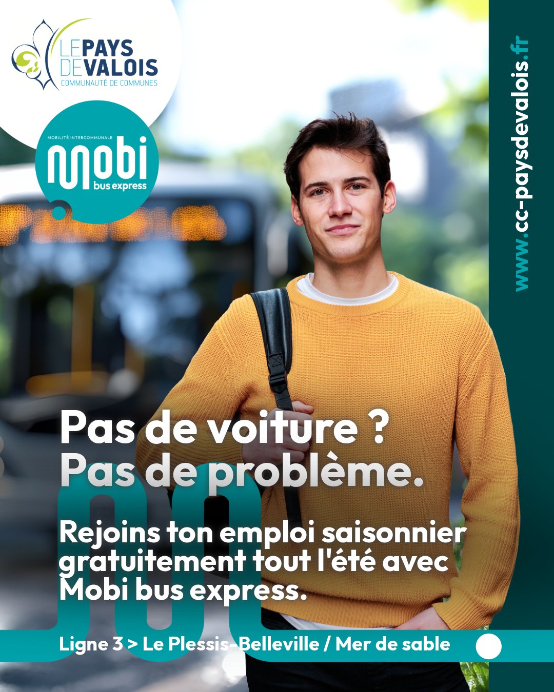 Chaque été, de nombreux étudiants et jeunes du Pays de Valois travaillent dans le secteur d’Ermenonville. Pour faciliter leurs déplacements, la communauté de communes met en place Mobi Bus Express, une ligne de bus gratuite reliant la gare SNCF du Plessis-Belleville à Ermenonville, zone d’emploi saisonnier du secteur.