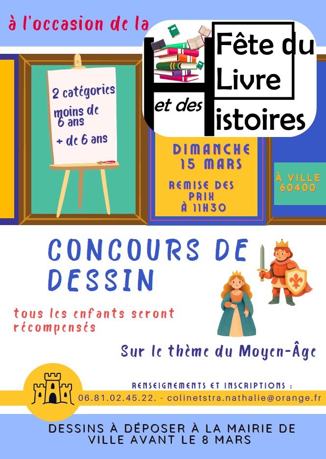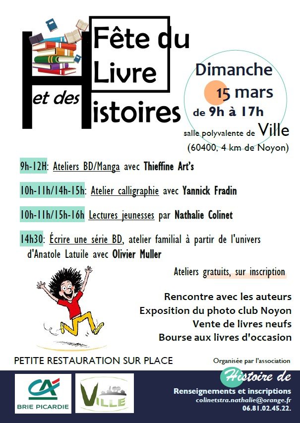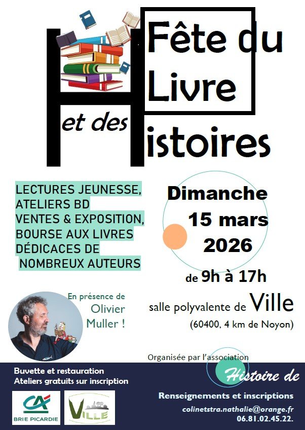 L'association Histoire de... organise la Fête du Livre et des Histoires, le dimanche 15 mars 2026, de 9h à 17h, à la salle polyvalente de Ville. Venez nombreux ! Voir le programme.